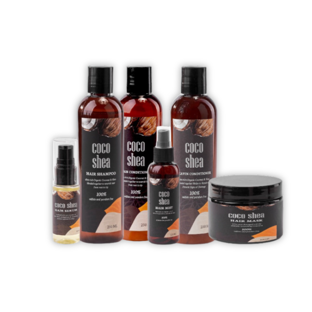 مجموعة علاجية للشعر غنية بزيت جوز الهند وزبدة الشيا لإصلاح التقصف، وتقوية الشعر، واستعادة نعومته ولمعانه الطبيعي